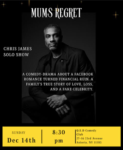 Comedian Chris James brings you this comedy-drama about a facebook-romance-turned-financial-ruin. NOTE: To purchase tickets you will need to affirm that you have read and agree to the QED ticketing policies.