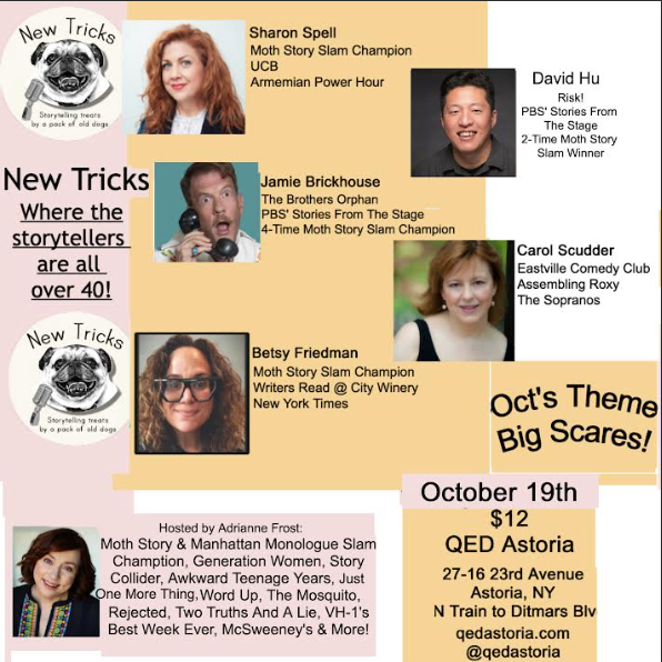 And your host, Adrianne Frost: Moth Story Slam and Manhattan Monologue Slam Champion, Rejected, Awkward Teenage Stories, The Mosquito, Two Truths And A Lie, One More Thing, VH-1's Best Week Ever, McSweeney's, The Signet Book of American Humor & More!