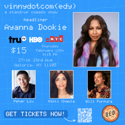 This event is headlined by the hilarious Ayanna Dookie, as featured on HBO, TruTV, WNYC, and more!